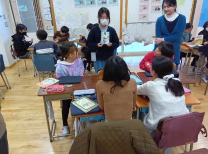 国語の時間です。お気に入りの本を紹介しました。みんなが読みたくなるようにプレゼンの内容を考えました。