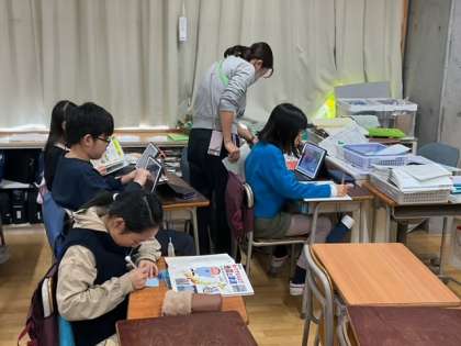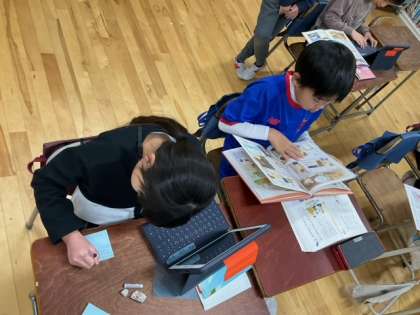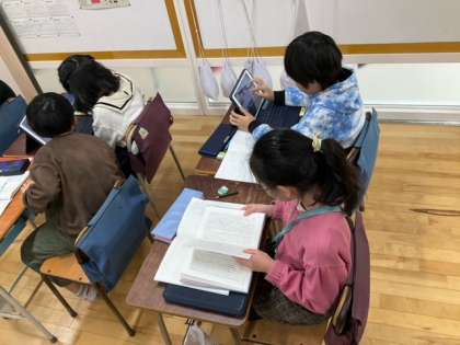総合的な学習の時間です。「もしものときにそなえよう」調べたことをカードを使って整理しています。