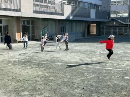 陽射しが降り注いでいます。なわとびに取り組む子どもが増えてきました。