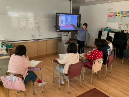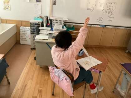 グループ学習の時間です。5年生は、社会科見学の事前学習を行っています。