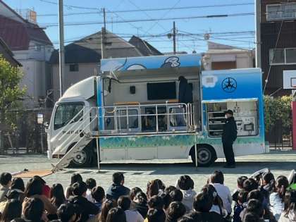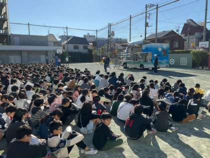 今日の避難訓練は、地震を想定して実施しました。このあと、くるみ学級と4年生代表児童が起震車体験を行います。