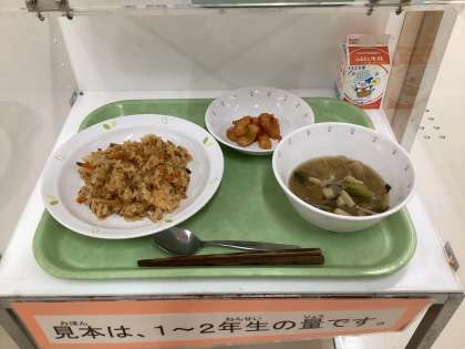 もやしご飯 いかの南蛮和え 高野豆腐の味噌汁 牛乳