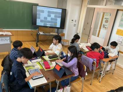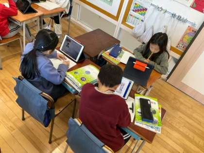 社会科の時間です。学校には、どんな場所に、どんな消火の時間かせぎをするものがありますか? まとめてみましょう。