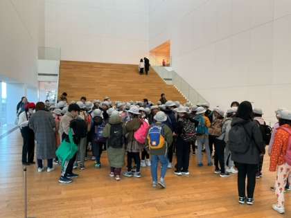 午後の見学場所「カップヌードルミュージアム」に到着しました。オリジナルカップヌードルづくりを体験します。