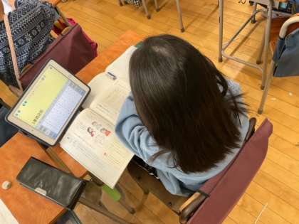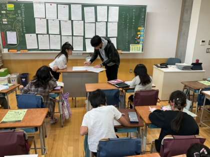 国語の時間です。「わたしの町のいいところ」紹介文を完成させています。
