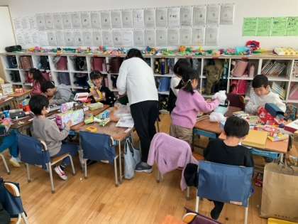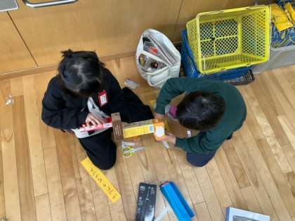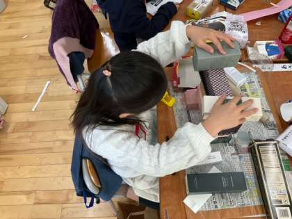 図工の時間です。「はことはこをくみあわせて」次は、どう組み合わせようかな?