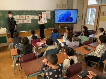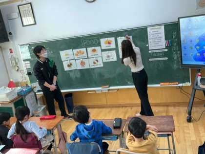 外国語活動の時間です。好きな食べ物を英語で伝えてみましょう。