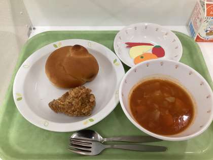 ミルクパン フライドチキン A B Cスープ セレクトフルーツ 牛乳