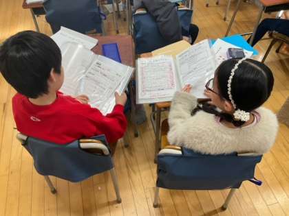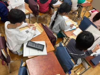 生活科の時間です。キャリア・パスポートを見ながら、2学期を振り返っています。