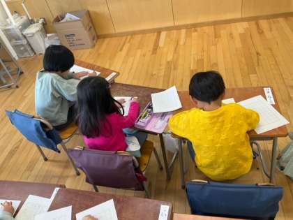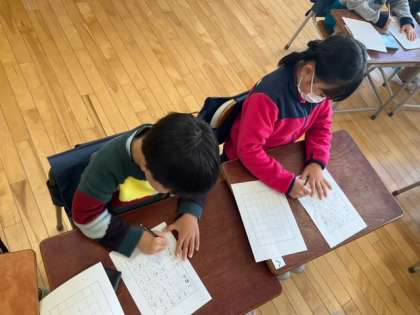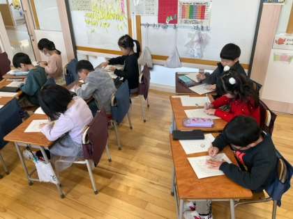 国語の時間です。2学期最後の書き初め練習をしています。