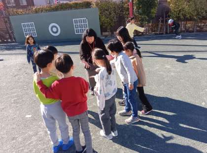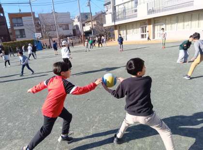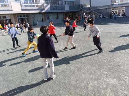 真っ青な空の下、元気よく遊びました。久しぶりに合った友達同士で遊ぶのはとても楽しそうです。