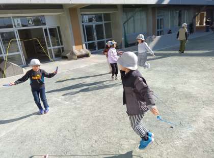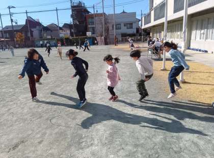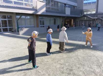 中休みの時間です。長縄跳びや短縄跳びをやっている児童がいました。学習したことをさらに楽しんだり高めたりしています。