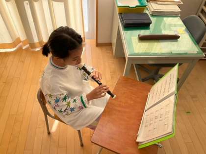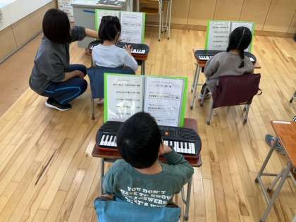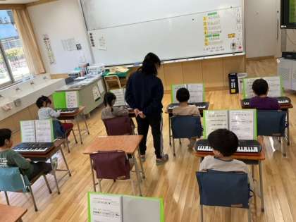 音楽の時間です。キーボードとリコーダーに取り組んでいます。キーボードでは、いろいろなCM ソングに挑戦しています。