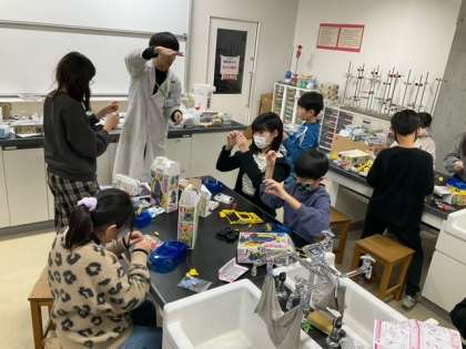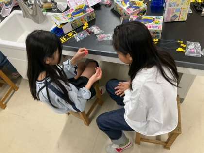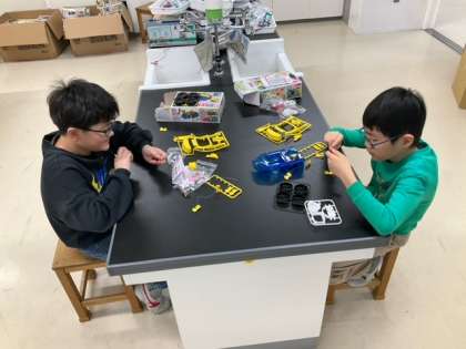 理科の時間です。「電流のはたらき」コイルモーター作成中です。