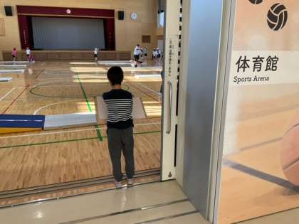 図工の時間です。「下北百景」が続きます。思い出の場所を描いている後姿、すてきです。