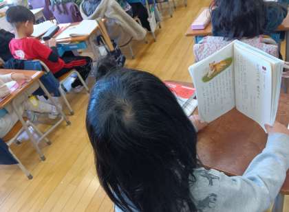 国語の時間です。「どうぶつの赤ちゃん」を音読しました。ライオンとしまうまの赤ちゃんの様子をくらべました。