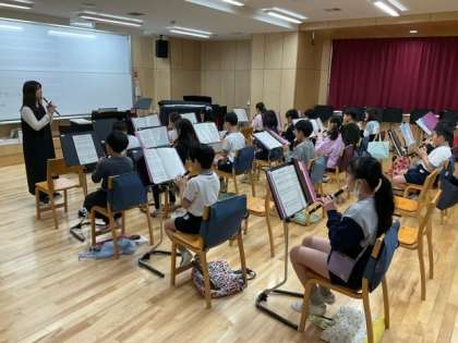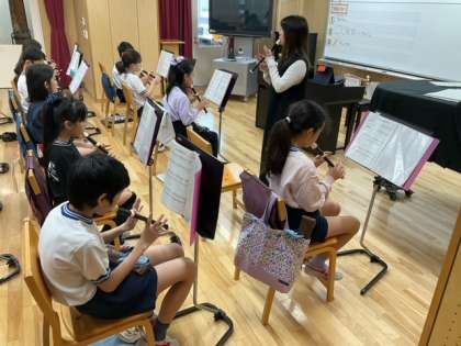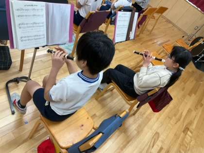 音楽の時間です。リコーダー演奏「もののけ姫」です。美しい旋律が響いています。