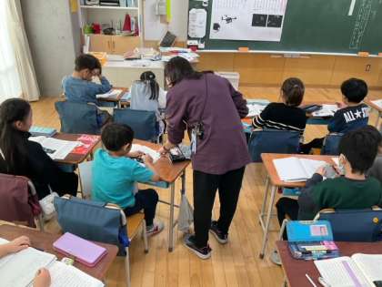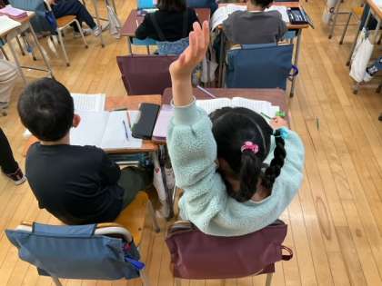国語の時間です。「ロボット」3段落の中から大事な言葉を見つけて、どんなロボットなのかを読み取っています。