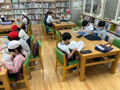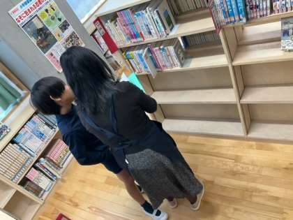 読書の時間です。司書の先生に相談すると、分かりやすく教えてくれますね。