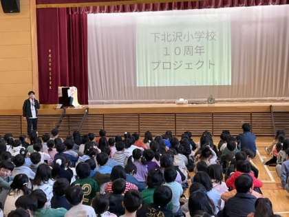 来年度は、下北沢小学校が開校して10周年を迎えます。様々な周年記念企画を考えています。今回は、「航空写真デザイン募集」のお知らせです。児童のみなさんが考えたデザインを取り入れて作っていきます。募集期間は、1月23日から2月14日までです。