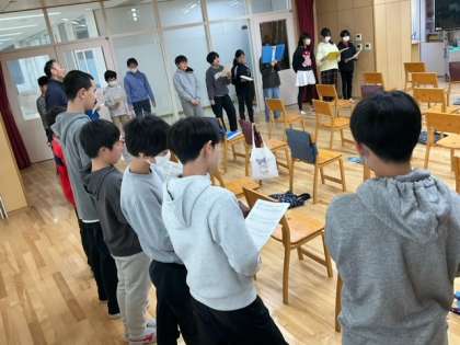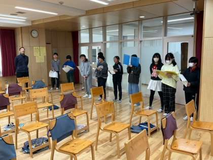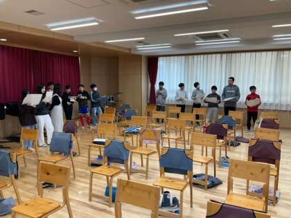 音楽の時間です。卒業式で歌う「With You. Smile 」の練習をしています。アルトパートの旋律が難しいですね。