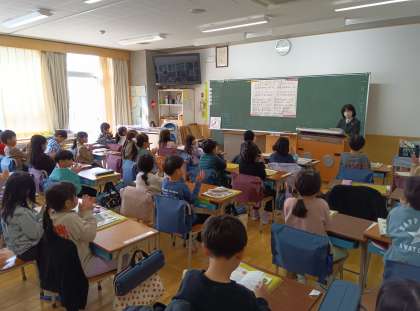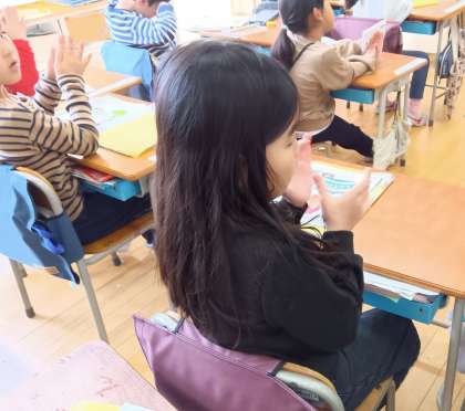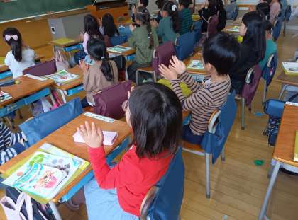 音楽の時間です。リズムに合わせて手拍子をしながら歌いました。クラスみんなで揃えました。