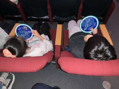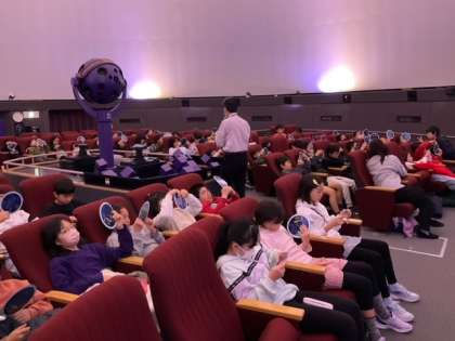 ?星座早見の使い方の学習をしています。子どもたちが使っている星座早見は、世田谷のオリジナルです。