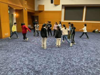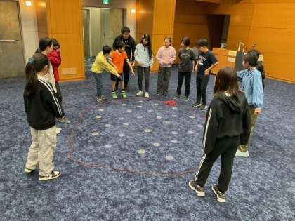 1〜30までの数字カードを順番に踏んでいくアクティビティです。いくつかのルールを守りながら、協力して目標タイムを目指します。
