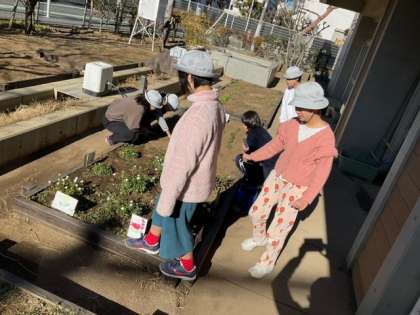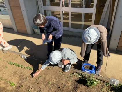 ?グループ学習の時間です。いろいろな種類の球根を植えました。芽が出てきたかな?