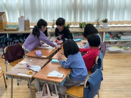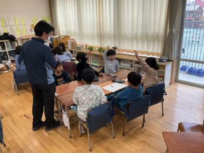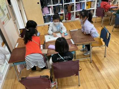 国語の時間です。「ものの名まえ」おみせやさんごっこの活動を通して、言葉に関する興味・関心を高めています。