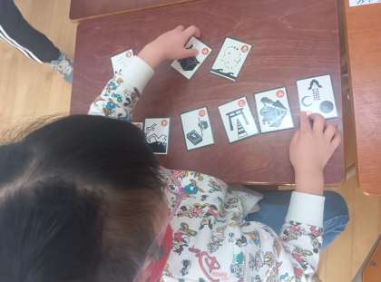 日本語の時間です。にほんごであそぼのかるたを使ってかるたをしました。普段使わない言葉もたくさん出てきました。
