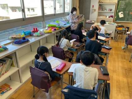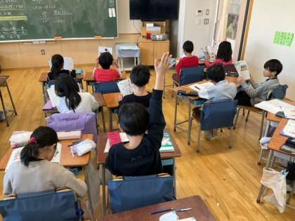 算数の時間です。積極的に自分の考えを発表しています。発言のしかたもしっかりしていますね。