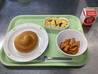 パンプキンパン キッシュ ペンネアマトリチャーナ 牛乳