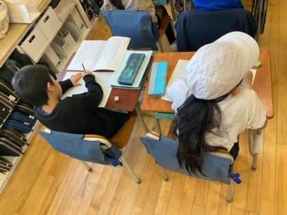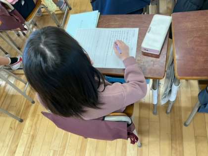 国語の時間です。「ありの行列」すべての段落を仲間わけしています。