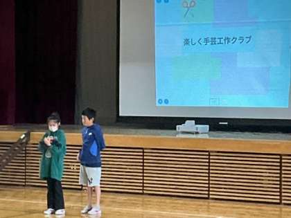 プログラミングクラブ・校庭球技クラブ・手芸工作クラブの発表です。