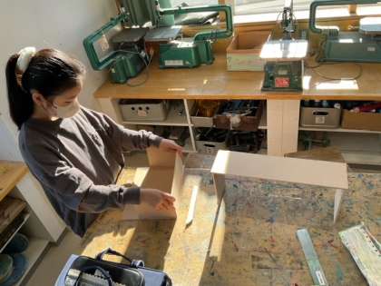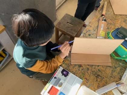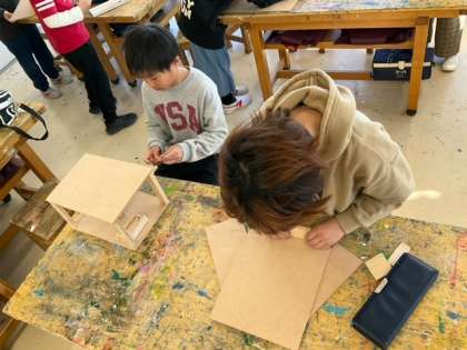 図工の時間です。「つくって つかって たのしんで」立体的になってきましたね。