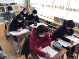 国語の時間です。書き初めの練習をしています。さすが6年生、良い字を書いています。
