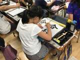 図工では、作品の素晴らしさをお互いに伝え合っています。