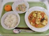 献立 ご飯、豆腐のカレー煮、ごま風味春雨サラダ、冷凍みかん、牛乳 <給食産地>...