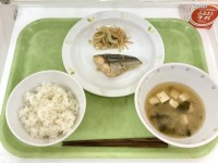 ご飯さばのみそ煮風もやしときゅうりのサラダわかめのみそ汁牛乳