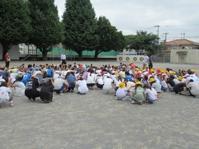 やめて校庭の真ん中付近に集まってしゃがみました。