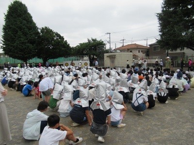 教室にいた子どもは防災ずきんをかぶって、出火元