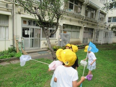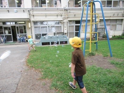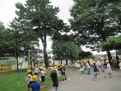 シャボン玉、水鉄砲、虫とりなど夏の遊びを