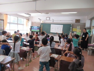 エアコンのきいた涼しい教室で歌とダンスをしました。