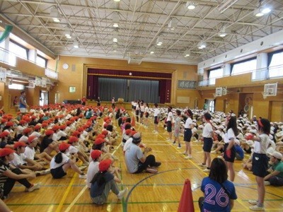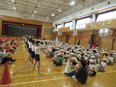 声を出すタイミングと身体の動きを確認して、本番さながらの迫力で応援しました。