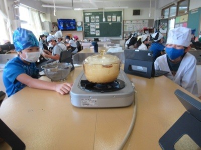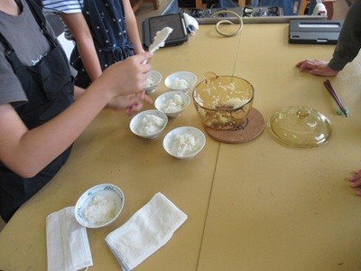 ほんのりおこげもできて、どの班も上手に炊き上がりました。子どもたちはまだ、お腹はすいていない様子でしたが、お鍋で炊いたお米をおいしく味わいました。