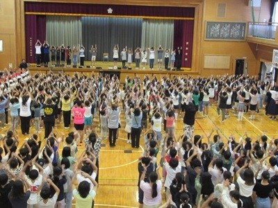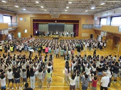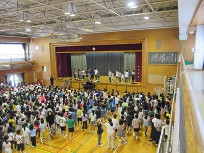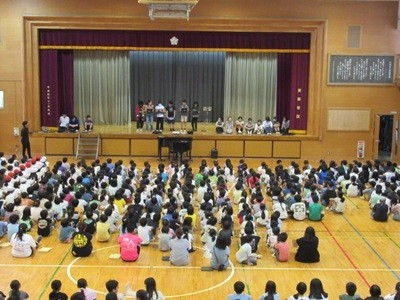 音楽委員会が考えたリズムゲームや楽器クイズを楽しんだ後、全員で「ぼくらのそしがや」を歌いました。