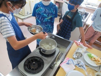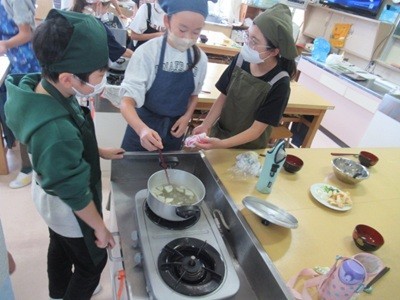 5年生の家庭科・調理実習です。味噌汁の作り方を学習しました。