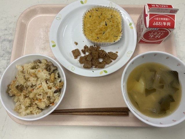 擬製豆腐は、水を切った豆腐を崩して、野菜やお肉、卵と混ぜ合わせて焼いた料理です。豆腐入りの具だくさんのたまご焼きのような料理です。今日は、鶏ひき肉、玉葱、にんじん、ひじき、豆腐、卵を使いました。たくさんの食材を使っているので、いろいろな食感が楽しめます。