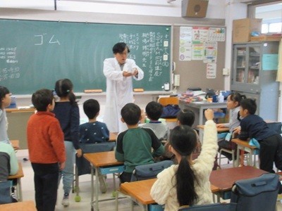 2年生の子どもたちは「かがくのせんせい」に興味津々の視線を向けました。